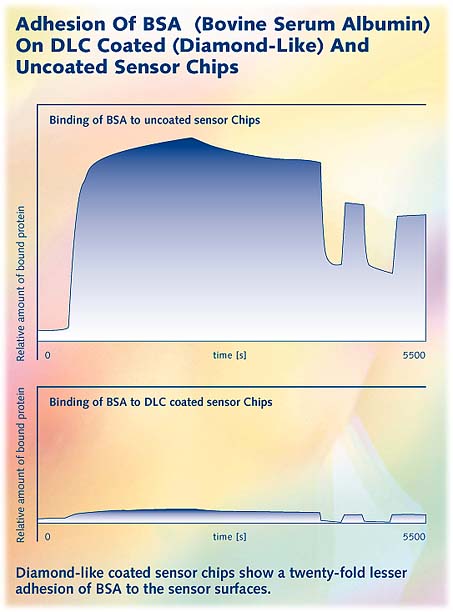 The result was a twenty-fold less adhesion of BSA on a coated sensor chip compared with an uncoated one.