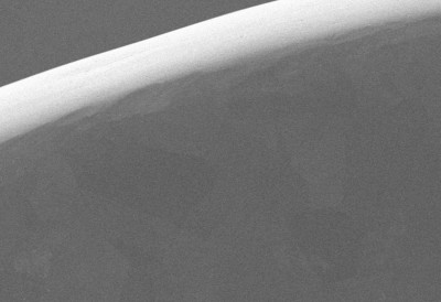 2,500 x magnification. Notice the round and smooth edge. |