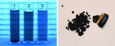 - Original CNTs powder (left) and a film produced by casting and drying from suspensions of stabilized CNTs.